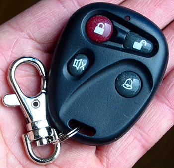 发射手柄上设置有四个按键,当按动时发射机上的按键,发射电路会被激活而进入发射状态,发射机静态时不耗电。机内装配的电池只被用于点发射状态。当用于报警设定和电器开关时,每节电池一般可用到一年以上,电池的容量为45mAH。