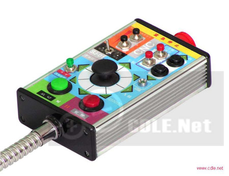 http://www.aeeboo.com/channelprogram/10567/?curpage=1 这款手控盒的是专门为MACH2/3软件设计的,可以和软件很好的进行数据通讯对数控设备进行三维控制和精确定位调整,主要功能如下: 1、采用单片机及专用芯片设计与计算机的USB口连接,通过MACH2/3可以对数控设备进行XYZ三轴变速控制位置变化,可以精确定位。 2、X-Y轴由万向摇杆单手变速控制,Z轴由按键变速控制; 3、通过附加键可以用摇杆和Z键实现XYZ三维点动精确定位,点动步长可以通过按键调整为1.000;0.100;0.010;0.001运行步长。 4、通过主轴键控制电主轴速度,有脉宽和调压两种控制形式,(如果不控制主轴,主轴键可以用来控制第四轴的速度和位置,功能与XYZ轴一样)。 5、如遇紧急情况,可通过急停按钮控制设备紧急制动。 6、可以通过按钮控制程序启动和暂停。 7、还可以通过加手控盒的按键来扩展实现MACH2/3软件中的大部分其它控制功能。但是对于实际使用意义不大。因为手控盒主要是用来调整刀的定位功能。 这个手控盒真正实现了与MACH2/3无缝隙连接,软件界面所有数据随手控盒的控制同步变化,和在界面调节作用是一致的。 手控盒外型