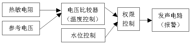 我在家里自制了一个淋浴用的热水器,经济实惠,并且自制了一个控制电路,该电路有两个功能:防止空烧和温度升高达到设定值后报警,使用后效果不错,性能稳定,特总结出来与大家分享。