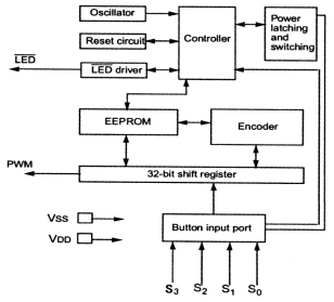 | 选择分类:当前分类——学单片机 相关联或者相类似的文章: 三十分钟一个小时学会单片机(9045) 什么是单片机?单片机有什么用? (8723) 如何用STC板将代码烧录进IC(8681) 怎样安装AT51编程板的USB转串口软件?(8206) 送给单片机爱好者——LED在线编码器(1814) 送给单片机爱好者——LED点阵在线编码器(1544) 单片机系统中的汉字显示(1492) 带语音报数功能的抢答器(1489) 用VB进行串口实时数据采集(1347) 用AT89C2051设计超声波测距仪(1171) 小小电子闹钟 生活学习良伴(1165) DS1820测温原理(1129) 几句代码实现控制摄像头(转)(1117) STC单片机选型指南(1111) 自制PIC单片机编程器(1105) USB转串口芯片CH340(1010) 快速学习单片机之黄金机会!(1010) 告戒购单片机开发实验板初学者(970) 新款实用旋转LED显示屏A(890) 使用市售 USB转RS232串口与PLC通信的测试报告 (881) 首页 前页 后页 尾页 本站推荐: | KEELOQ滚动码编解码器与RFID 美国Microchip公司推出的HCSXXX,是为远程无"钥匙"遥控开锁系统中加密识别单元而设计的KEELOQ滚动码编解码器。它采用最新加密编码技术--Keeloq滚动算法对所要传输的代码进行加密-----使得每次发送的码以无规律方式变化,且都是唯一的,不重复的,故称之为滚动码,因此具有极高的保密性。 因此滚动码和固定码就传输的保密性进行比较,前者的优越性和先进性是显而易见的。固定码的保密性很低, 用空中拦截的方法很容易把代码攫取下来以备今后重新发送(实际上我国已经发生了很多不法分子用仪器截取电话手机密码的案例),或者用所有可能的码去逐一试用直到搜寻到正确代码(俗称尝试法)。而如果采用滚动码,原始代码虽相同,但每次所传输的代码却千差万别, 所以上述攫取和扫描两种非法侵入都是徒劳无功的。 滚动码应用系统十分简单,它由编码器与解码器俩部分组成。编码器由MICROCHIP的HCSXXX专用编码芯片加简单的外围电路构成。其中解码器又分为软件解码与硬件解码。软件解码器主芯片为内置KEELOQ解码软件的MCU;而硬件解码主芯片则为HCS5XX专用解码芯片。 目前常用的编码器芯片的型号及其功能参数见下表: 型号 传输代码长度 (BIT) 滚动码 (BIT) 可编程密钥 (BIT) 种子码长度 (BIT) 电压范围 (伏) 功能数目 主要特性 封装 HCS101 66 3.5-13 7 固定码, 28BIT系列码 8P,8SN HCS200 66 32 64 32 3.5-13 7 8P,8SN HCS201 66 32 64 32 3.5-13 7 8P,8SN HCS300 66 32 64 32 2.0-6.3 15 LED指示,电池不足指示, 超时关断 8P,8SN HCS301 66 32 64 32 3.5-13.0 15 8P,8SN HCS320 66 32 64 32 3.5-13 16 移位操作, 其它同HCS300 8P,8SN HCS360 67 32 64 48 2.0-6.6 15 IR、PWM、MANCHESTER 编码 2-BIT CRC 8P,8SN HCS361 67 32 64 48 2.0-6.6 15 IR、PWM、VPWM 编码, 2-BIT CRC 8P,8SN HCS362 67 32 2*64 60 2.0-6.6 HCS365 67 32 2*64 60 2.0-6.6 4*15 PWM、VPWM、PPM、 MANCHESTER 编码 8P,8SM,8ST HCS370 69 32 2*64 60 2.0-6.6 4*15 PWM、VPWM、PPM、 MANCHESTER 编码 14P,14SL,14ST 其中HCS100/200/201/300/301/320为低成本品种,面向大众化产品。HCS360/362/HSC365/370功能增强型。最常用的HCS300/301为8脚PDIP和SOIC封装,图A为HCS300/301的内部结构,它有4个按键输入接口,最多可外接15个按键,外围电路只需按键和RF电路,成本很低,典型电路见图B。 ![]() 图A:HCS300/301内部结构 ![]() 图B:典型应用电路 常用编码芯片的引脚图如下: HCS101/200/201 HCS300/301/360/361 ![]() HCS320 HCS365 HCS370 常用的接收器芯片的型号及其功能参数见下表: 型号 传输代码长度 (BIT) 滚动码 (BIT) 可编程密钥 (BIT) 种子码长度 (BIT) 电压范围 (伏) 功能数目 其它特性 封装 HCS410 69 32 64 60 2.0-6.6 7 感应式 8P,8SN,8ST,WM HCS412 69 32 64 60 2.0-6.6 7 无源 8P,8SN,8ST,WM HCS473 67/69 32 2x64 60 2.0-5.5 4x15 接收器芯片引脚图如下: ![]() HCS410 HCS412 HCS473 常用的解码器芯片的型号及其功能参数见下表: 型号 接收代码 长度(BIT) 支持的编码器 最多可容纳 编码器数量 电压范围 (伏) 功能输出 其它特性 封装 HCS500 67 HCS101,HCS200, HCS201,HCS300, HCS301,HCS320, HCS360,HCS361, HCS410,HCS412 7 4.5-5.5 15个功能串行输出 串行接口 8P,8SM HCS512 67 4 3.0-6.0 15个功能并行输出; 低电标志 可 SECURE LEARN 8P,18S0 HCS515 67 7 4.5-5.5 15个功能串行、 并行输出 串行、并行接口; 片内带1K编码器EEPROM 及1K用户可用EEPROM 14P,14SL 接收器芯片引脚图如下: ![]() HCS500 HCS512 HCS515 1、 本站不保证以上观点正确,就算是本站原创作品,本站也不保证内容正确。 2、如果您拥有本文版权,并且不想在本站转载,请书面通知本站立即删除并且向您公开道歉! |