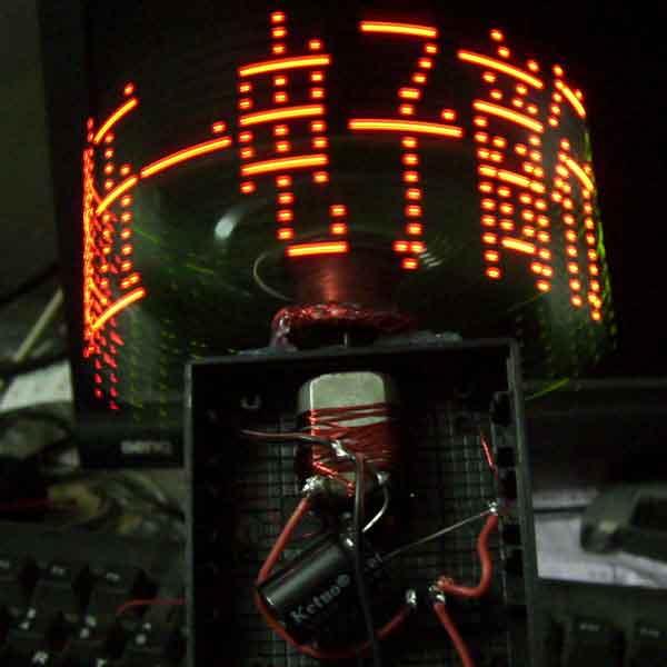 大家看到的图片中的文字是用电动机带动LED转动,用单片机控制LED点亮和熄灭来形成文字的,这些文字一看上去,就象悬浮在空中的文字,上下左右无牵无挂,给人以美好的回忆和享受。而对于电子爱好者来说,自己制作成功这样的作品,给你带来的开心和喜悦简置无法形容。 如果用于广告展示、产品介绍,既吸引人的眼球,这也算是宝贵的回报了。