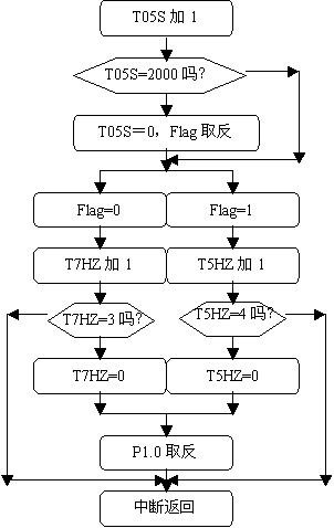 (1. 我们用单片机实定时/计数器T0来产生700HZ和500HZ的频率,根据定时/计数器T0,我们取定时250us,因此,700HZ的频率要经过3次250us的定时,而500HZ的频率要经过4次250us的定时。